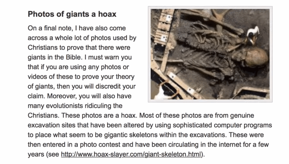 메모: 혹시 인터넷에서 떠돌고 있는 네피림(거인족) 사진들이 사실이라고 생각하시는 분들을 위하여 사진과 링크를 올려드립니다. 아래 사진들은 “사진 콘테스트”에 실린 사진들입니다.