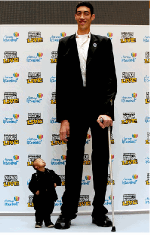 | 중국의 농구 선수 야오 밍(233CM)과 마이클 조던(신체 198CM) |