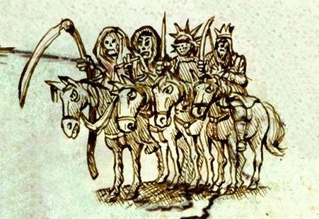 붉은 말을 탄 자는 전쟁 도발자이며, 이 색깔은 살육을 의미하는 색깔입니다. |