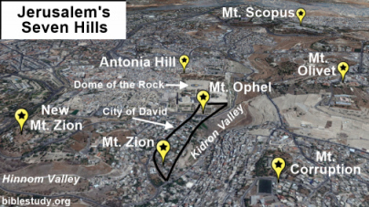 어니스트 L. 마틴 박사(Ernest L. Martin)님의 예루살렘의 일곱 언덕(The Seven Hills of Jerusalem)에 대한 자세한 글은 다음 링크를 참조하세요. https://www.askelm.com/prophecy/p000201.htm
