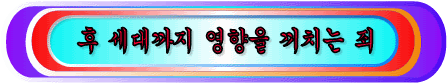 경험, 연결, 계속하다, 씨(자손), 움직임, 묶다, 처음 즉 자손에게 우리의 보고 경험한 것이 연결되고 계속되며 처음 사람(즉 우리)에게 묶어 주는 것을 의미합니다. 아이들은 당연히 부모들의 영향을 많이 받으며 그리고 죄는 계속해서 한 세대에서 다음 세대까지 크게 영향을 끼칩니다. 예를 들어 창세기를 보면 우리의 조상 아브라함이 자신의 생명의 안전을 도모하기 위하여 자신의 아내를 누이라고 했습니다. 그런데 아주 슬픈 일은 그의 아들 이삭 역시 그의 아버지와 마찬가지로 아비멜렉에게 자신의 아내 리브가를 그의 누이라고 속이는 것을 볼 수 있습니다. 그뿐만 아니라 어느 술에 만취한 사람이 운전을 하면 다른 사람들까지 위태롭게 하며, 마약에 중독이 되면 그 사람의 가족까지 고생을하는 것처럼 그들의 부모의 죄를 따르지 않고 실제로 결백한 사람들이라 할지라도 영향을 받습니다. 간략하게 말해서 다른 사람의 죄 때문에 고난 당하는 경우가 무수합니다. 죄는 우리가 사랑하는 사람들 - 자녀들, 그들의 아이들, 친구들 그리고 심지어 우리가 사는 공동체 - 에게 영향을 끼칩니다. 여호와(야훼 / 야웨)는 죄로 인한 즉각적인 영향 또는 죄의 반사작용(反射作用)을 보시고 가만히 계시지 아니하십니다. 여호와(야훼 / 야웨)께서 주저하시지 않고 돌아보시고 점검하시며 심판하십니다. 우리의 모든 사악한 언어, 모든 사악한 행위, 모든 사악한 동기는 우리 자신, 우리 주의의 사람들 그리고 특별히 우리의 자녀들에게 크게 영향을 끼칩니다. 우리가 죄를 범한다면, 여호와(야훼 / 야웨)의 율법에 언급된 저주를 불러 오며 그리고 우리의 자녀들에게까지 저주가 임하게 합니다. 이러한 죄악의 일시적인 영향, 결과 또는 죄악의 수확은 필연(必然)적이며 그리고 역행할 수 없습니다. 이러한 저주는 반드시 죄인들에게 임하며 그리고 우주의 그 어느 것도 이러한 저주를 멈출 수 없습니다. 최후의 날에는 - 죄인 자신의 영원한 죽음입니다. 성경은 또한 지극히 높으신 분의 아드님이 우리의 죄를 담당하시고 죄의 대가를 지불 하셨으므로 말미암아 최후의 결과인 - 영원한 죽음으로부터 구원을 제공하신다고 언급합니다. 얼마나 경외케 하며 멋있고 근사한 사실입니까? 여호와(야훼 / 야웨)를 신뢰(信賴)하고 순종하면 축복을 가져오지만 그러나 여호와(야훼 / 야웨)를 업신여겨 함부로 행동하고 죄를 범하면, 저주는 율법을 범한 개개인뿐만 아니라 삼 사대까지 영향을 끼칩니다. 아 얼마나 무시무시한 책임이 부모들에게 있습니까! 잠시 멈추시고 그리고 이 사실에 대하여 심사숙고 하시길 바랍니다. What is Iniquity / 불법(죄악)이 무엇입니까? 불법은 상상할 수 없는 슬픔 그리고 고통을 유발(誘發)하며 최후에는 죽이는 영적 독약(毒藥)입니다. 불법을 행한다는 말은 여호와(야훼 / 야웨)의 명령에 대한 반역이며 지극히 높으신 분께서 그들을 위해 의도하신 삶을 포기했다는 것을 뜻합니다. 이러한 죄는, 무지함으로 인하여 종종 저지르는 죄와는 다르며, 불법을 행한다는 말은 여호와(야훼 / 야웨)의 율법을 알면서도 뻔뻔스럽게 반역하는 행위를 말합니다. 간략하게 말하자면, 죄는 여호와(야훼 / 야웨)의 율법의 도전입니다.